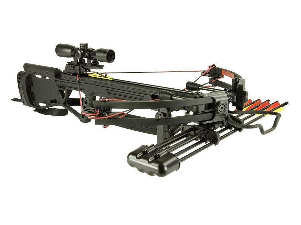 Прицельная дальность стрельбы 30-40 метров. Сила натяжения не превышает 43 кг, поэтому для приобретения, ношения и использования не требуются разрешения, достаточно иметь при себе только сертификат ЭКЦ МВД РФ. Копию сертификата Вы получите при покупке товара в нашем магазине. В комплекте с арбалетом поставляются оптический прицел 4х32, кивер, 4 стрелы, наплечный ремень, ручной натяжитель. В продаже имеются запасные части: законцовки, тетива, стрелы, дуга (плечи). Наличие уточняйте у менеджера.