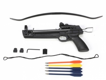 Рекурсивный арбалет пистолетного типа Yarrow Model E имеет простую и надежную конструкцию. Прицельная дальность стрельбы 10-15 метров. В стандартный комплект к арбалету входит пять стрел. Сила натяжения не превышает 43 кг, поэтому для приобретения, ношения и использования не требуются разрешения, достаточно иметь при себе только сертификат ЭКЦ МВД РФ. Копию сертификата Вы получите при покупке товара в нашем магазине. В продаже имеются запасные части: законцовки, тетива, стрелы, дуга (плечи). Наличие уточняйте у менеджера.