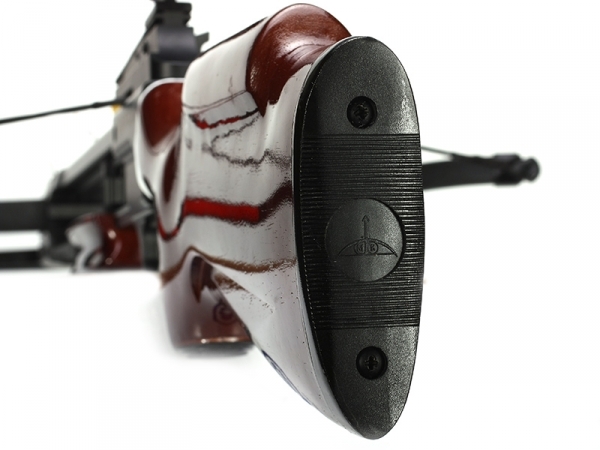 Арбалет Yarrow Model F: • Мощный рекурсивный арбалет винтовочного типа с облегченной конструкцией. • Арбалет оснащен предохранителем, автоматически блокирующим спусковой крючок при взводе тетивы. • Деревянное ложе покрытое лаком. • Стальное стремя и алюминиевая стволовая часть имеют защитное антикоррозийное покрытие. • Арбалет оснащен прицельным приспособлением с возможностью его регулировки по вертикали и горизонтали. • Для удобства удержания арбалета в конструкции предусмотрено наличие деревянного цевья. Арбалет оснащен предохранителем, автоматически блокирующим спусковой крючок при взводе тетивы. Арбалет оснащен прицельной планкой с креплением под «ласточкин хвост», что позволяет оснастить его оптическим или коллиматорным прицелом. Прицельная дальность стрельбы 25-30 метров. В стандартный комплект к арбалету входит две алюминиевые стрелы и открытый регулируемый прицел. Сила натяжения не превышает 43 кг, поэтому для приобретения, ношения и использования не требуются разрешения, достаточно иметь при себе только сертификат ЭКЦ МВД РФ. Копию сертификата Вы получите при покупке товара в нашем магазине. В продаже имеются запасные части: законцовки, тетива, стрелы, дуга (плечи). Наличие уточняйте у менеджера.