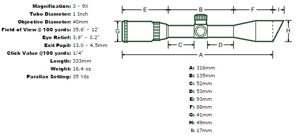 Прицел оптический LEAPERS UTG 3-9X40 TF2 (SCP-U394FDT2), без подсветки