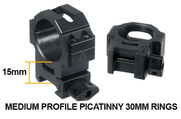 12. Просветленное многослойное покрытие. Благодаря специальному многослойному просветленному покрытию, светопропускание линз улучшается во всем спектре видимого света. Коэффициент светопропускания отдельных линз превышает 95%, что создает яркое изображение при дневном освещении и улучшает видимость в сумерках. 13. В комплекте поставки имеются кольца для установки на планку Weaver/Picatinny средней высоты, с отверстием для стрельбы. Кольца при установке на планку имеют винтовой зажим, а прицел закрепляется в кольцах при помощи 4-х винтов (по 2 с каждой стороны). 14. На окуляре имеется кольцо быстрой фокусировки. Размер прицела: