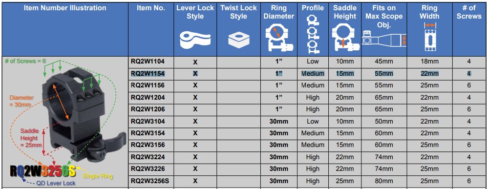 Кольца быстросъемные для установки оптического прицела (с трубой 1 дюйм, 25.4 мм), средние, на вивер/пикаттини (Weaver) Артикул Leapers RQ2W1154 Для Екатеринбурга: