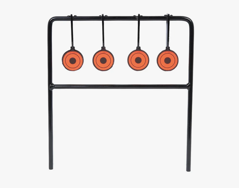 Мини-тир для пневматики на 4 кружка. Выполнен из стали в виде П-образной конструкции, включающей 4 мишени. Четыре диска подвешиваются на центральной штанге, прокручиваясь при точном попадании. Толщина металла составляет 2.2 мм, ввиду чего стрельба рекомендуется из пневматики мощностью не более 7,5 Дж с рекомендуемой дистанции 10-15 метров. Для повышения заметности целей с расстояния в комплекте идут наклейки ярко-оранжевого цвета Каркас размером 37x27 сантиметров. Вес 0,6 кг Минитир Patriot BH-MSH6 Для Екатеринбурга: