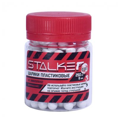 Главная → Купить по низкой цене → Пули и шары 4.5 / 6 мм → Шарики BB 4.5 и 6 мм → Шары страйкбольные 6 мм (STALKER), 0.25г (250шт)