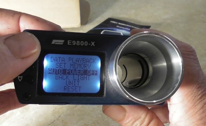 Портативный хронограф E9800-X тайваньского производства для измерения скорости и энергии пуль, шариков, а также скорострельности страйкбольной или пневматической винтовки. Хронограф поставляется в картонной коробке. На передней панели хронографа расположены LCD-дисплей 25 х 32 мм и 3 кнопки управления. Возможная погрешность - не более 1,3% Корпус изготовлен из пластика, в комплекте алюминиевая насадка для отстрела в хронограф. На нижней панели корпуса E9800-X впресована латунная гайка для установки на штатив с стандартной резьбой 1/4"-20TPI. Работает от 3 батареек ААА. Режимы работы: