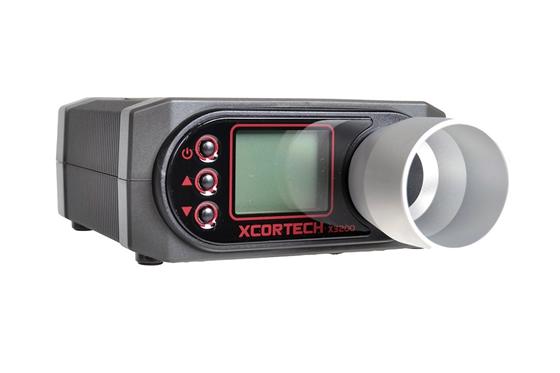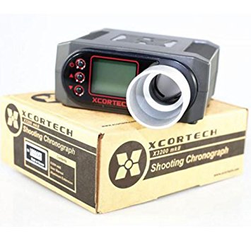 XCORTECH X3200 – портативный хронограф тайваньского производства для измерения скорости и энергии пуль, шариков, а также скорострельности страйкбольной или пневматической винтовки. Хронограф поставляется в картонной коробке. На передней панели хронографа расположены LCD-дисплей 25 х 32 мм и 3 кнопки управления. Корпус изготовлен из пластика, в комплекте алюминиевая насадка для отстрела в хронограф. На нижней панели корпуса XCORTECH X3200 впресована латунная гайка для установки на штатив с стандартной резьбой 1/4"-20TPI. Работает от 4 батареек ААА. Режимы работы: