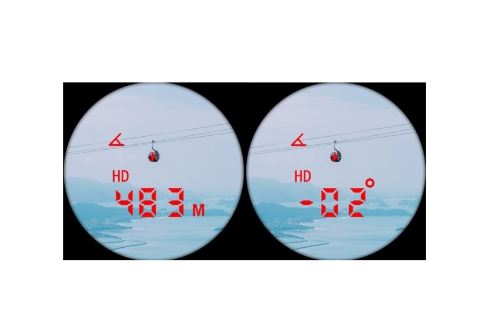 2. Режим угломера. Измерение дистанции и угла (0...800м., -90...+90град) + режим сканирования. На дисплее иконка угла, отображается дистанция до цели и угол прицеливания.