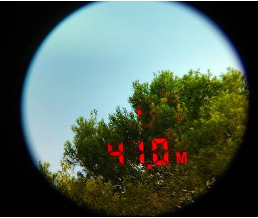 Лазерный дальномер GERON Precision 800 - функциональный и компактный лазерный дальномер, новейшая разработка компании GERON Precision Optics. Измеряемые расстояния от 5 до 800 метров. Дальномер Geron имеет точность измерений 0,5 м. и способен измерять и отображать прямое расстояние до цели, высоту цели, расстояние до цели вдоль линии горизонта(горизонталь), а так же угол, под которым производится измерение. Есть гольф режим с функцией захвата флага. Встроенный вибросигнал помогает определить наиболее точный результат. Для сложных условий измерения и для исключения естественного тремора рук предусмотрен режим сканирования - дальномер непрерывно сканирует дистанцию и выводит полученные показания на дисплей. Дальномер Герон имеет 6-ти кратное оптическое увеличение и многослойное покрытие линз. Так же, благодаря новой конструкции дисплея с использование призмы, изображение становится как никогда ранее светлым и контрастным. LED дисплей дальномера Geron - новейшая запатентованная разработка компании, благодаря которому больше нет проблем со считыванием показаний в сумерках. Дисплей сам подстраивается под окружающее освещение и регулирует подсветку таким образом, что бы не пересвечивать цель. Дальномер работает как в метрах, так и в ярдах. Прибором очень легко пользоваться. Обрезиненный корпус прибора не дает ему выскользнуть из рук и предохраняет от несильных ударов. По окончании использования дальномер отключается через 20 сек. самостоятельно, до следующего использования. Ресурс батарейки - более 1000 измерений. Дальномер поставляется в полностью работоспособном комплекте: дальномер, инструкция, батарейка CR2, защитный чехол, ремешок для ношения на запястье. Гарантия производителя 1 год. Режимы: 1. Обычный режим. Измерение дистанции (0...800м.) + режим сканирования. На дисплее отсутствуют дополнительные иконки, отображается только дистанция до цели.