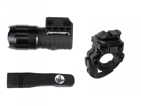 Gletcher GLA05 – универсальный компактный фонарь, имеющий несколько режимов работы. Простой и удобный в обращении фонарь имеет большое количество вариантов крепления и использования. Он может служить подствольным фонарём для пневматического оружия, карманным фонарем с подвесом на одежду, велосипедным фонарём с креплением на руль, и даже применяться в качестве заменителя налобного фонаря с креплением на бейсболку. Корпус фонаря влагозащищенный, выдерживает брызги воды и дождя. Фонарь не предназначен для использования под водой. В качестве источника света в фонаре используется твердотельный светоизлучающий диод (LED). В качестве источника питания используются три батареи типа ААА.