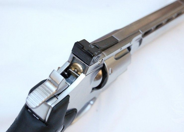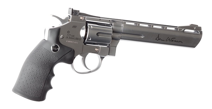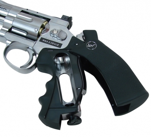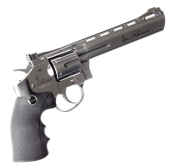 Пневматический пистолет ASG Dan Wesson 6" Silver - это точная копия популярного револьвера с максимальным функционированием всех подвижных частей — полная имитация зарядки боевого револьвера, возможность использования приспособления для быстрой зарядки фальшпатронов, предварительный взвод, регулируемая прицельная планка, возможность установки планки Вивера.