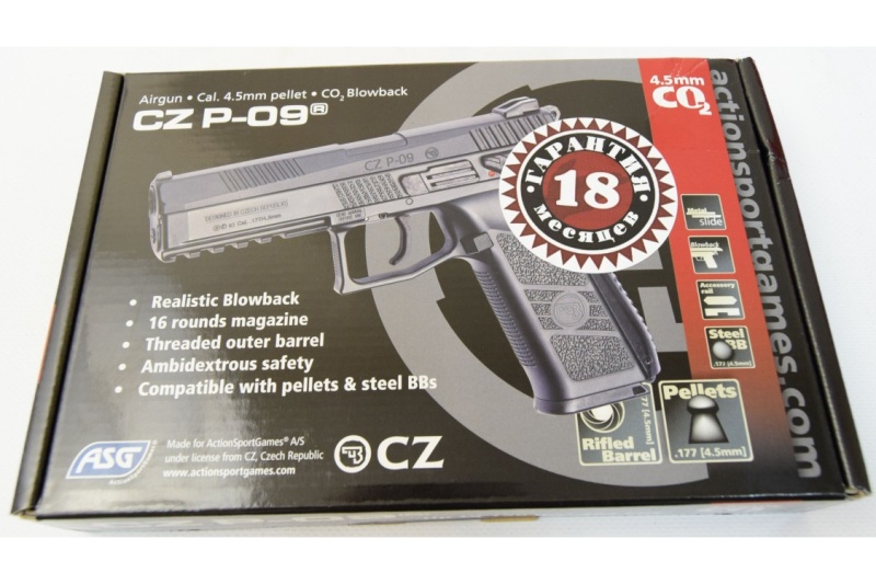 Пистолет ASG CZ P 09 Duty пулевой - полноразмерный тактический пистолет с интегрированной планкой Вивера для установки фонаря и/или лазерного целеуказателя. Пистолет производится в Японии по заказу датской компании Action Sport Games (ASG). Сконструирован он на базе боевого пистолета CZ P-09 Duty, который является полноразмерной версией P-07.