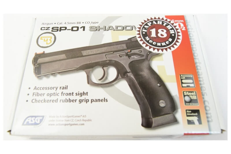 Пневматический пистолет ASG CZ SP-01 shadow - пистолет газобаллонного типа, стреляющий шариками диаметра 4.5 мм с начальной скоростью в 116 м/с. Сконструирован на базе боевого CZ SP 01 (Ceska Zbrojovka). Аналог производится датской компанией Action Sport Games (ASG).