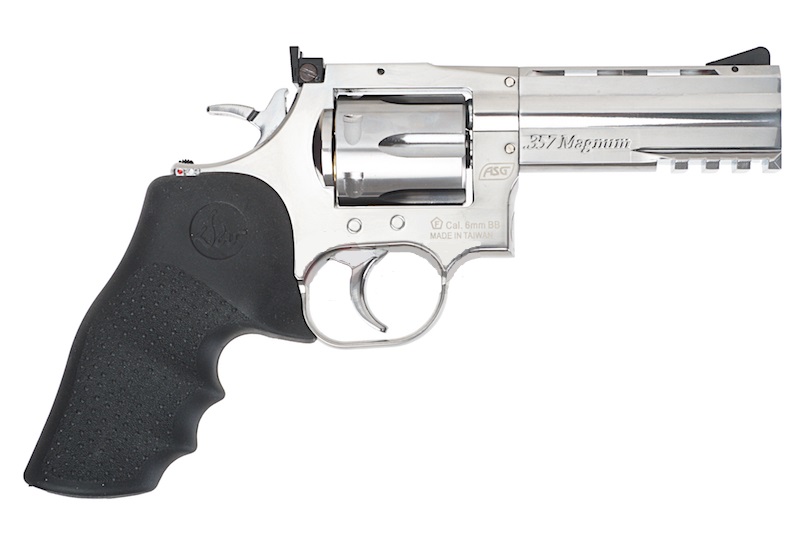 Пневматический револьвер ASG Dan Wesson 715-4 Silver - аналог револьвера Dan Wesson 715 модели с 4-х дюймовым стволом от американской компании Dan Wesson Arms. Аналог несет аутентичную маркировку и имеет выбитый на корпусе уникальный серийный номер. Производится датской компанией Action Sport Games (ASG). Необычное исполнение в серебристом цвете выделяет этот пистолет среди других версий знаменитого револьвера.