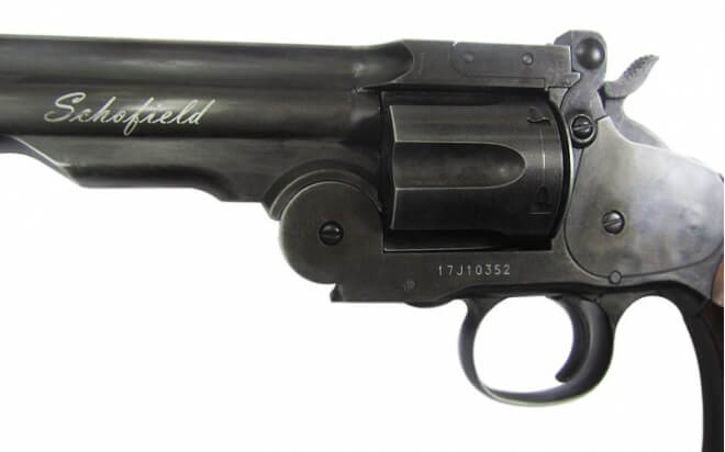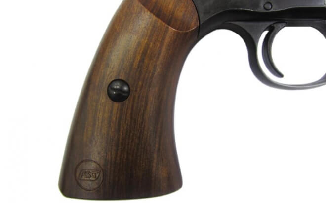 Пневматический револьвер ASG Schofield-6 aging black, пулевой от компании Action Sport Games, выполненный в цвете aging black (состаренный черный). Для стрельбы из пневматического револьвера ASG Schofield-6 используются свинцовые пули калибра 4,5 мм. Вместимость магазина барабанного типа - 6 пуль. Начальная скорость полета свинцовой пули составляет 131 м/с. Мощность до 4 Джоулей. В качестве источника энергии используются 12-ти граммовые баллончики СО2, которые устанавливаются непосредственно в рукоять револьвера. Револьвер ASG Schofield-6 aging black в длину равен 320 мм, при этом его масса не превышает 1,035 кг. Револьвер ASG выполнен из высокопрочных материалов. Металлический корпус обеспечит продолжительный срок службы револьвера. Особенности модели: