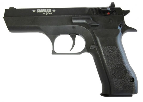 Smersh H 59 - копия израильского пистолета Jericho 941, берущего корни у чешской линейки высокоточных пистолетов CZ. Данная модель имеет металлический неподвижный затвор и пластиковую рамку. Двухсторонний предохранитель позволяет использовать пистолет без проблем как правше, так и левше. Smersh H 59 имеет вместительный полноразмерный магазин, выполненный полностью из металла. Для Екатеринбурга: