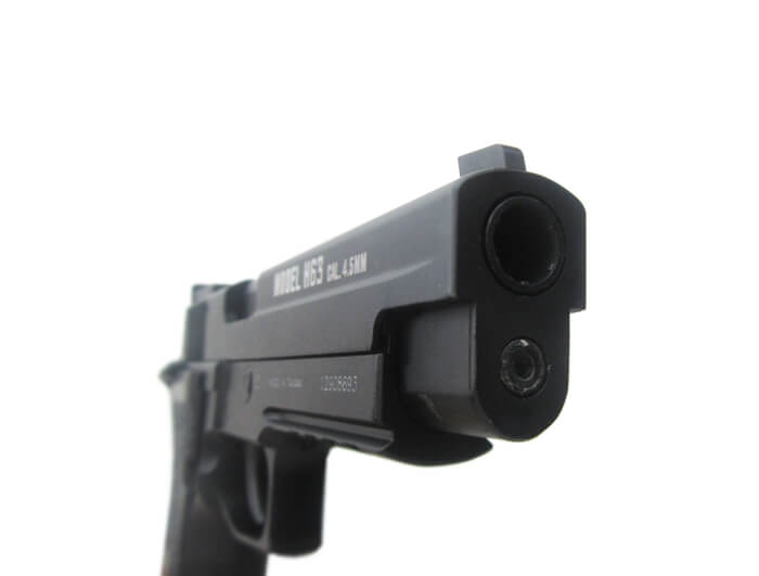 Пневматический пистолет Smersh H63 4,5 мм - газобаллонный пистолет внешне копирующий Sig Sauer P226 X-Five Tactical. Эргономичный каркас пистолета цельнометаллический. Энергия пули для Smersh H63 достигает 3 Дж. Обладая прицельной дальностью в 10 метров при начальной скорости заряда в 120 м/с, он отлично подойдет для развития профессиональных способностей. Полноразмерный магазин вмещает в себя 19 ВВ кал. 4,5 мм. Пистолет весит 1250 г., длина его составляет 255 мм. Любителей пневматики порадует и наличие подвижной затворной рамы, что придает стрельбе большую реалистичность. Пневматический пистолет Smersh H63 станет отличным подарком начинающему стрелку! Для Екатеринбурга: