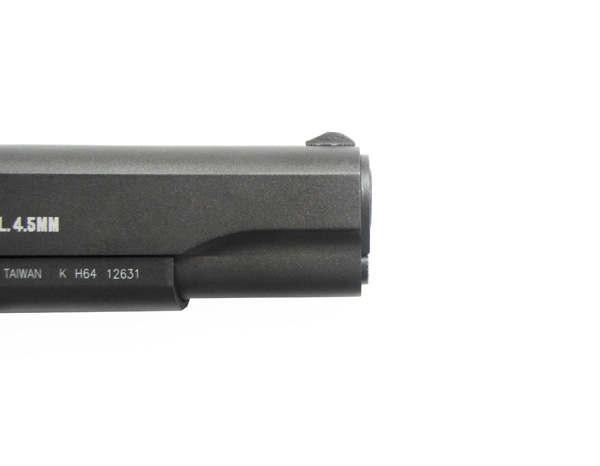 Наверное, это самая точная копия Colt 1911 в линейке этого производителя. Форма пневматического пистолета Smersh H64 досконально повторяет дизайн своего прототипа. Модель полностью сделана из метала, за исключением лишь пластмассовых "щечек" рукоятки. Эти детали вносят дополнительное удобство в процесс поражения мишеней. Пистолет повторяет оригинал в точности вплоть до каждой детали. Smersh H64 оборудован системой blowback, которая, за счет очень тяжелого затвора, имитирует довольно сильную отдачу. Неполная разборка этой модели так же в точности повторяет разборку огнестрельного прототипа. Вся конструкция реплики сделана из качественного металла, чем объясняется большой вес - почти килограмм, как и оригинального оружия. Вместительный магазин на 19 шариков, а также мощность выстрела обеспечивают этой пневматике не только идеальное сходство, но и вполне достойные своего прообраза стрелковые характеристики. Smersh H64 обладает хорошей прицельной дальностью и кучностью попадания. Для Екатеринбурга: