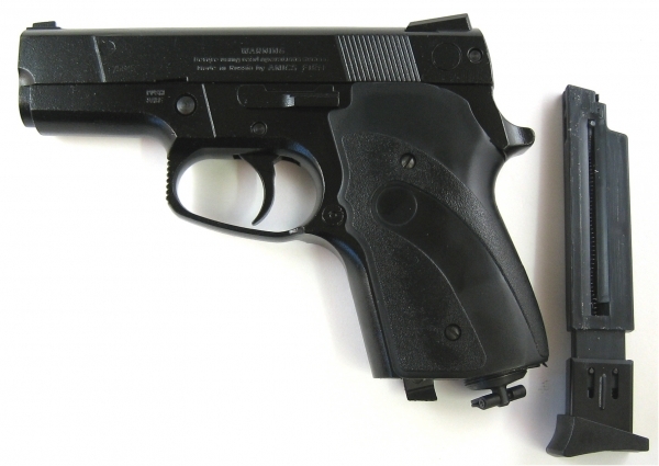 Позволяет вести стрельбу стальными омеднеными шариками калибра 4,5 мм. 15-зарядный пластмассовый магазин и 12-граммовый баллончик с углекислотой размещаются в рукоятке. Для Екатеринбурга:
