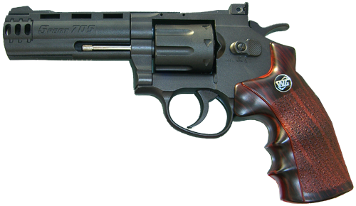 Пневматический пистолет Borner Sport 705 - одна из версий револьвера от Борнер. Шарики заряжаются в пластиковый клип, который вставляется в барабан. Материал корпуса - металл, ствол также металлический, внешняя оболочка ствола - пластик.