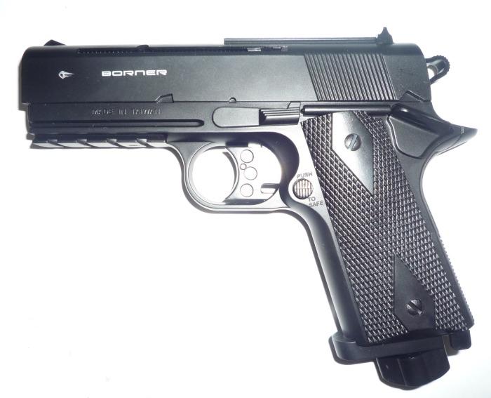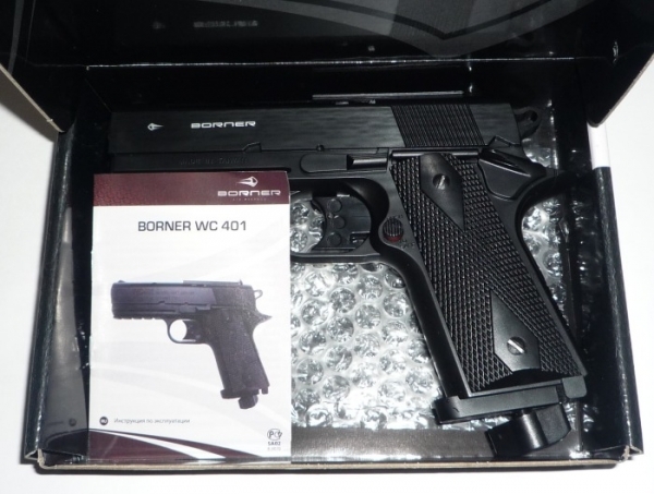 Пневматический пистолет Borner WC 401 - бюджетная, но интересная по дизайну модель. Корпус выполнен из ударопрочного пластика. Все внутренние элементы изготовлены из металла.