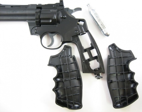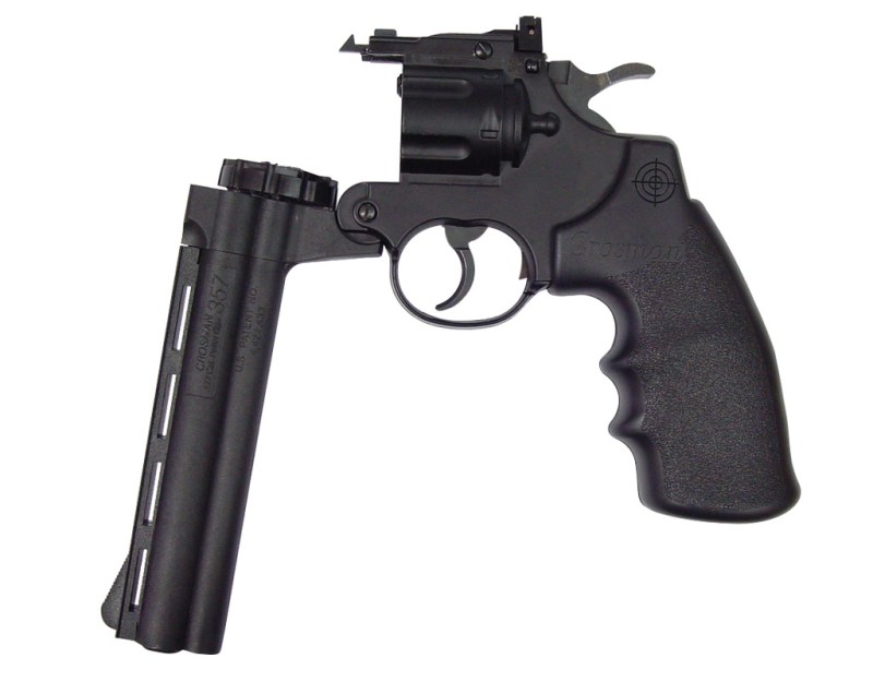 Пневматический револьвер Crosman 357-6 по внешнему виду практически не отличим от своего боевого прототипа – известного револьвера COLT Python. Ствол стальной нарезной, корпус выполнен из металла, ствольная часть - из пластика. Для Екатеринбурга: