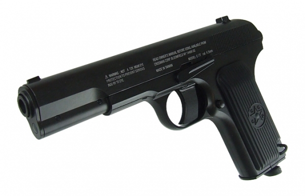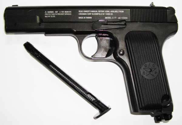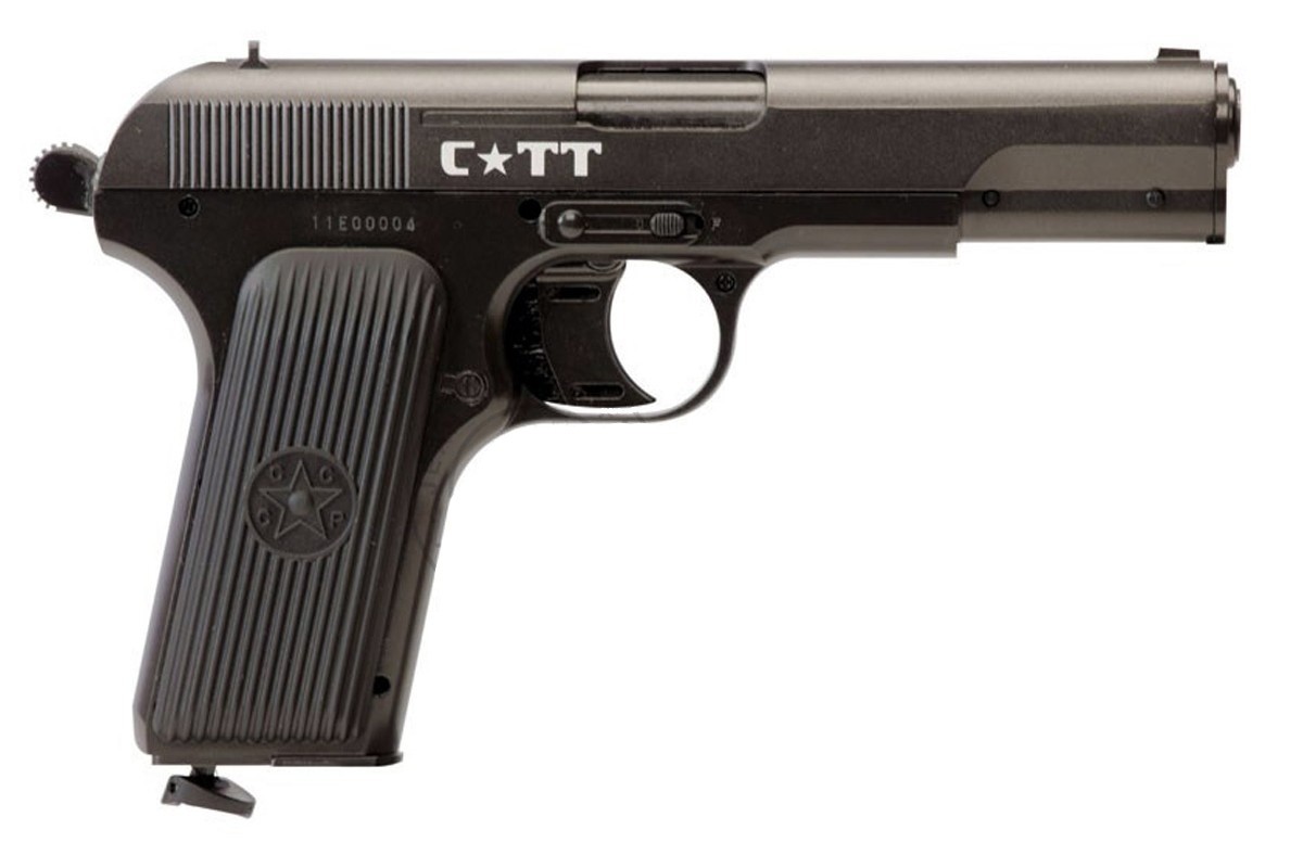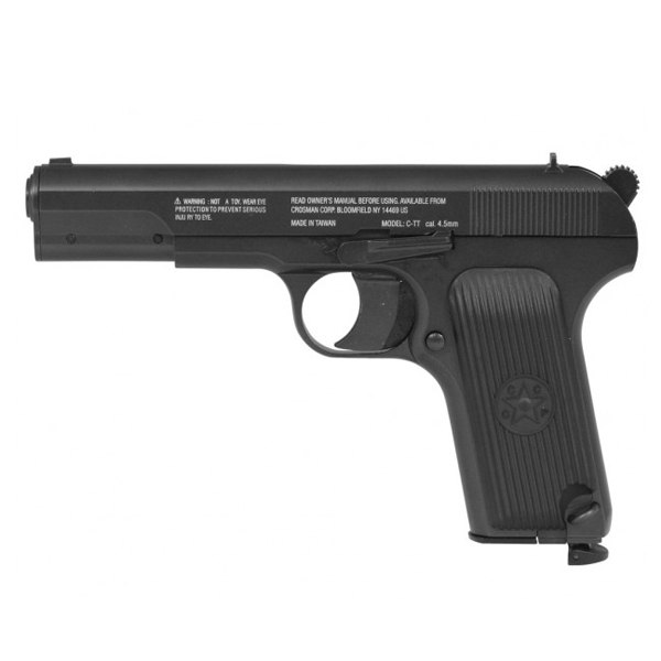 Пневматический пистолет Crosman С-ТТ - надежный металлический пистолет, функционально повторяющий классическую легендарную боевую модель пистолета ТТ (Тульский Токарев). Ствол стальной, гладкий. Магазин металлический. Подвижная затворная рама, но без функции Blowback. Выстрел без предварительного взвода.