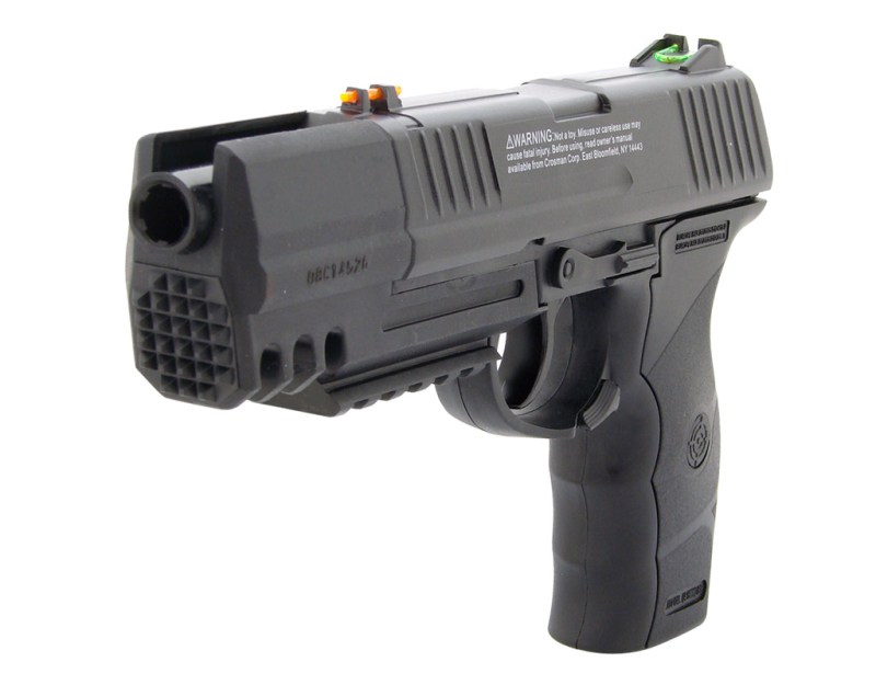 Пневматический пистолет Crosman С21 – один из самых мощных образцов пневматического газобаллонного оружия, стреляющего металлическими шариками BB. Затворная рама пистолета изготовлена из металла, материал остальной части корпуса – ударопрочный пластик. Баллончик СО2 очень легко заменяется при сдвигании кожуха рукояти назад. Фибероптические (светопроводящие) нити на мушке и прицельной планке облегчают прицеливание в сумерках или в темноте. Страна-производитель: Тайвань Для Екатеринбурга: