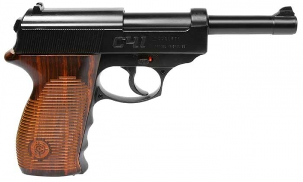 Пневматический пистолет Crosman С41 имеет подвижную затворную раму (системы Blowback нет). Пистолет изготовлен из сплава металлов, что придает ему вид и массивность боевого прототипа. Рельефная рукоятка удобна для лево- и праворуких стрелков. Оружие смоделировано по образу легендарного немецкого пистолета времен Второй Мировой войны Walther P-38. В качестве источника энергии используются 12-граммовые баллончики СО2. Легко сдвигающаяся рукоятка позволяет быстро заменять баллон и проводить больше времени за активной стрельбой. Прицельная планка и мушка обеспечивают точную стрельбу.