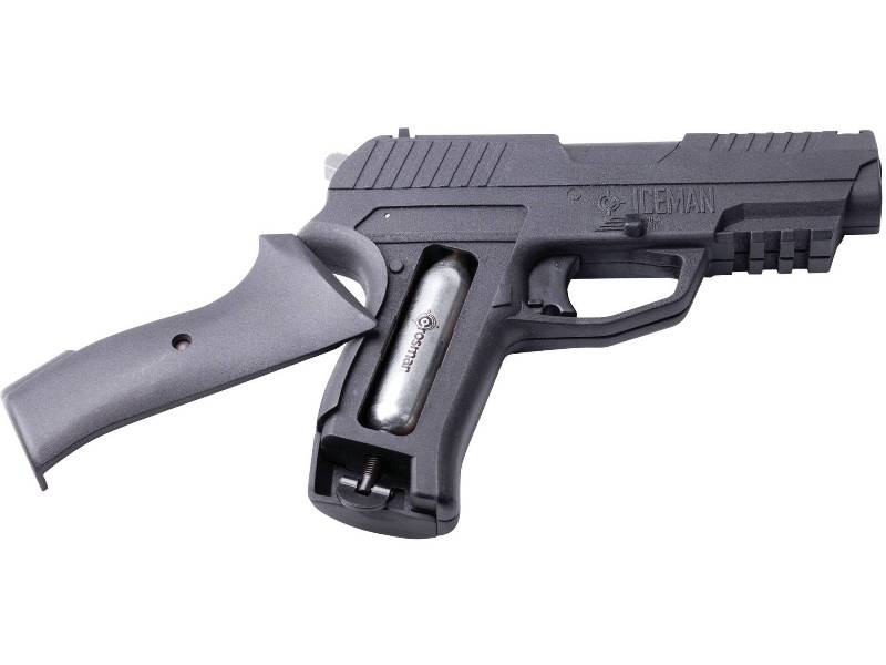 Пневматический пистолет Crosman Iceman - недорогая модель пневматического пистолета в пластиковом корпусе для начинающих стрелков. Имеется возможность стрельбы как свинцовыми пулями, так и стальными шариками. Под стволом пистолета имеются тактические салазки (планка Пикатинни) для установки лазерного целеуказателя или тактического фонаря. Для Екатеринбурга: