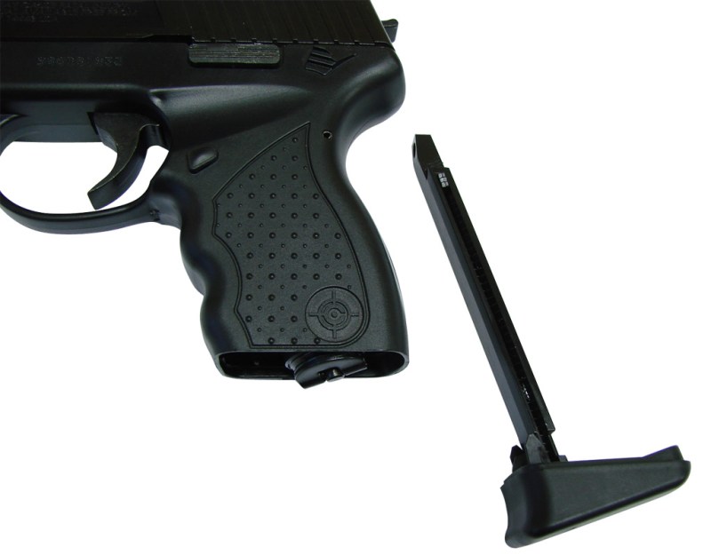 Пневматический пистолет Crosman PRO77 Kit поставляется в комплекте со стрелковым набором: пули+очки+2 баллончика Компактный газобаллонный полуавтоматический пистолет с обратным ходом затвора, стреляет шариками калибра 4,5 мм, под стволом находится направляющая для крепления дополнительных аксессуаров. Этот пистолет с функцией "Blow-back" обладает невероятной скорострельностью и позволяет произвести 17 выстрелов настолько быстро, насколько быстро Вы сможете нажимать на спусковой крючок. Функция "Blow-back" имитирует работу автоматики, как на огнестрельных пистолетах. В пистолете имеется механизм, имитирующий затворную задержку в огнестрельном пистолете. Когда в магазине заканчиваются шарики затворная рама пистолета встает в заднее положение. Чтобы вернуть затворную раму в нормальное положение нужно вынуть магазин и передернуть затворную раму. После этого рама встанет в нормальное положение. Вставить заряженный магазин и пистолет снова готов к стрельбе. Для Екатеринбурга: