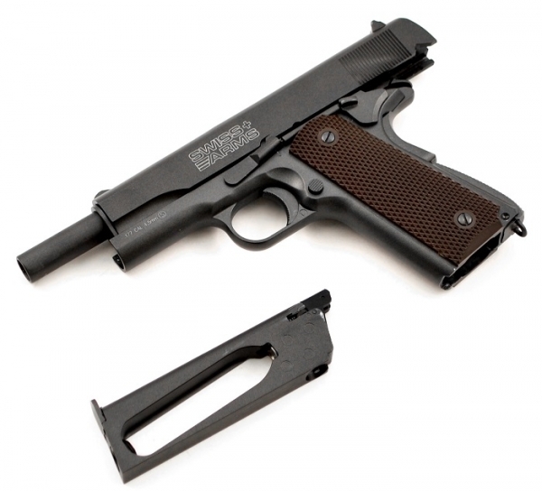 Пневматический пистолет Cybergun Witness 1911 full metall (Swiss Arms P1911) - копия всемирно известного Colt M1911. Пистолет стоял на вооружении ВС США с 1911 по 1985 год, разрешен к использованию и в настоящее время.