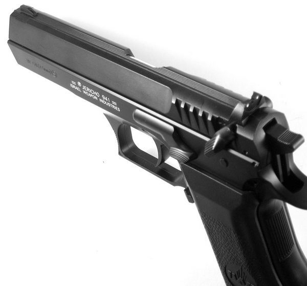 Пистолет Cybergun Jericho 941 (Swiss Arms 941) - пневматическая копия весьма известной модели огнестрельного пистолета Jericho 941. В 1990м году израильская компания IMI (Israel Military Industries) при участии известной итальянской компании Fratelli Tanfoglio создала пистолет Jericho 941. Этот пистолет базировался на конструкции чешского пистолета CZ-75, производством «клонов» которого как раз и известна фирма Tanfoglio. Пистолет Jericho 941 под патрон 9х19 довольно широко используется Израильской полицией и службами безопасности. Внешне пистолет Jericho имеет определенное сходство с весьма известным крупнокалиберным пистолетом Desert Eagle. Пневматический пистолет Cybergun Jericho 941 (Swiss Arms 941)
