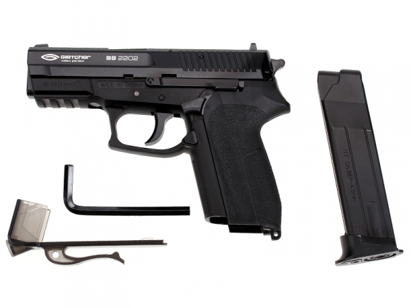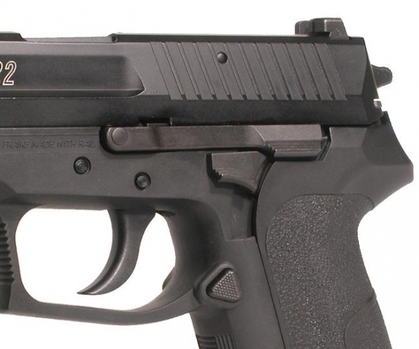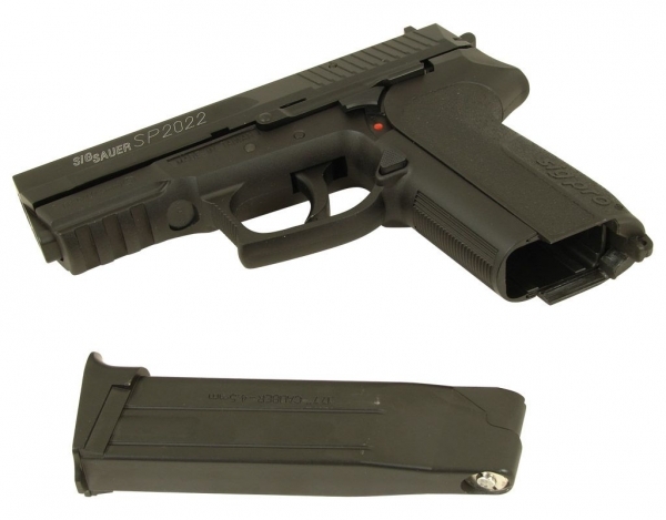 Пистолет пневматический Cybergun Sig Sauer SP 2022, металл: - габаритные характеристики, идентичные оригиналу - оснащен предохранителем - ударно-спусковой механизм, обеспечивающий стрельбу только самовзводом (Double Action Only) - упор под мизинец на крышке магазина для комфортного удержания при стрельбе - планка Weaver под стволом для крепления фонаря или ЛЦУ - скрытый поджимной винт баллона, обеспечивающий большую визуальную схожесть с оригиналом
