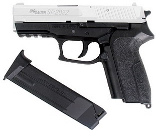 Пистолет пневматический Cybergun Sig Sauer SP 2022, металл, никель: - габаритные характеристики, идентичные оригиналу - оснащен предохранителем - ударно-спусковой механизм, обеспечивающий стрельбу только самовзводом (Double Action Only) - упор под мизинец на крышке магазина для комфортного удержания при стрельбе - планка Weaver под стволом для крепления фонаря или ЛЦУ - скрытый поджимной винт баллона, обеспечивающий большую визуальную схожесть с оригиналом