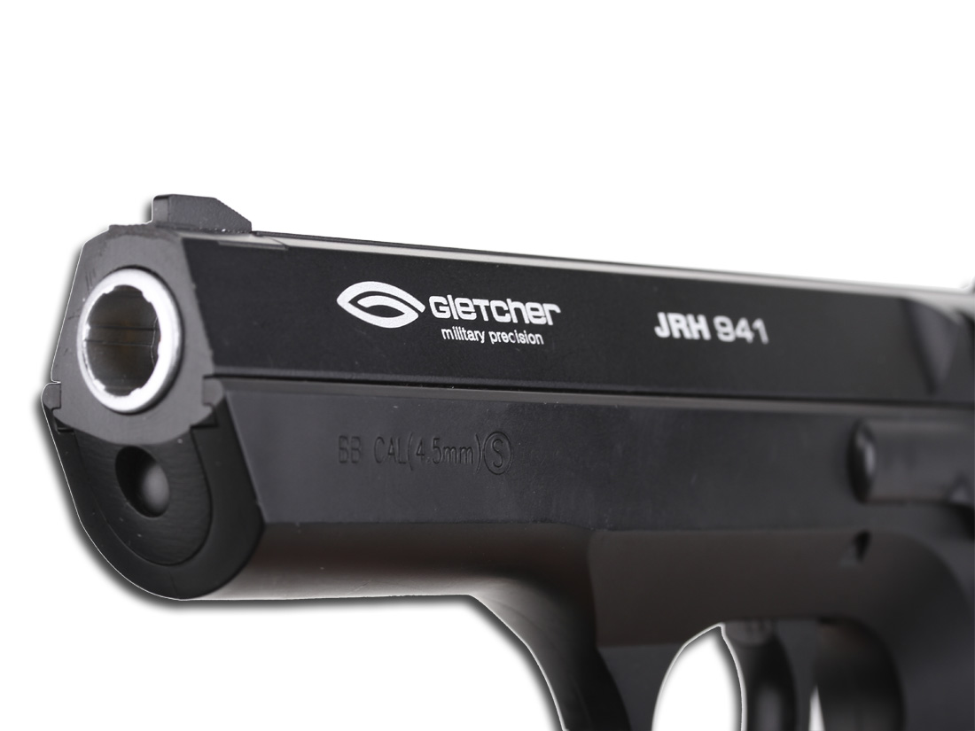 Пистолет Gletcher JRH 941 - пневматическая копия весьма известной модели огнестрельного пистолета Jericho 941. В 1990м году израильская компания IMI (Israel Military Industries) при участии известной итальянской компании Fratelli Tanfoglio создала пистолет Jericho 941. Этот пистолет базировался на конструкции чешского пистолета CZ-75, производством «клонов» которого как раз и известна фирма Tanfoglio. Пистолет Jericho 941 под патрон 9х19 довольно широко используется Израильской полицией и службами безопасности. Внешне пистолет Jericho имеет определенное сходство с весьма известным крупнокалиберным пистолетом Desert Eagle.