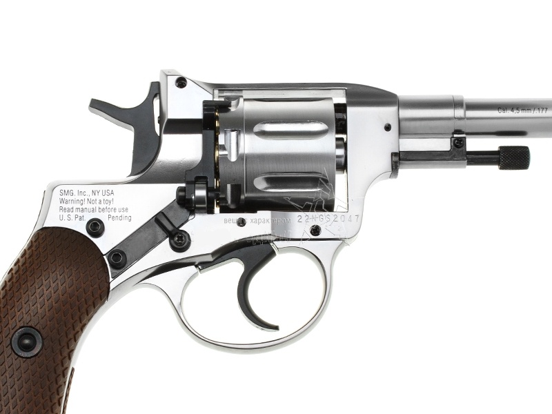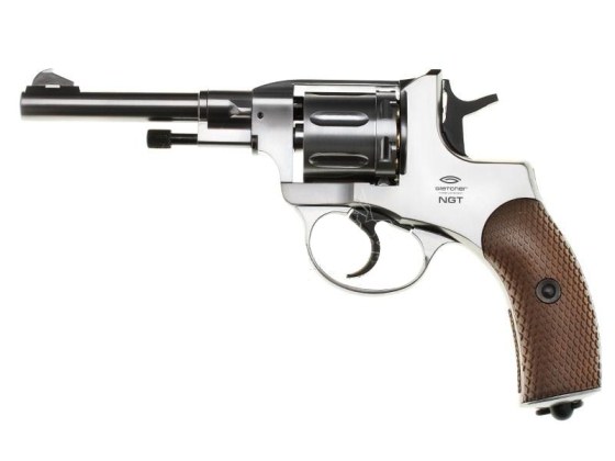 Пневматический револьвер Gletcher NGT Silver - реплика револьвера системы Нагана, созданного в 1892 году бельгийскими оружейниками.