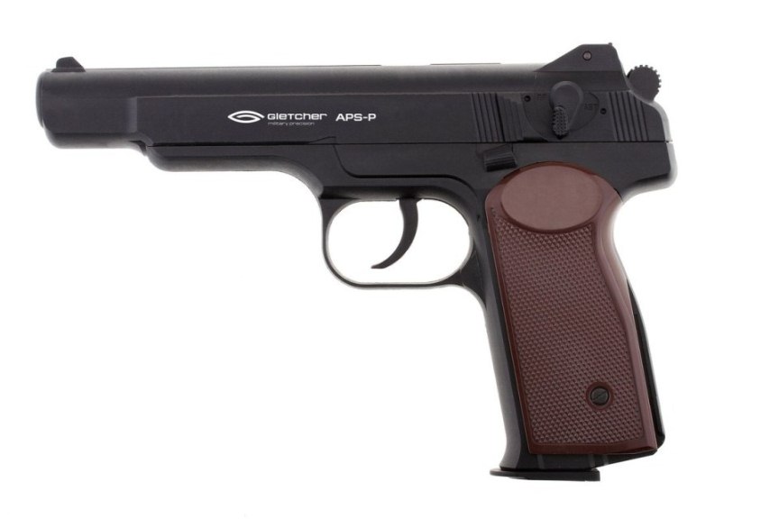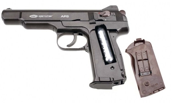 Gletcher APS-P - недорогая версия пневматического пистолета Стечкина . Корпус выполнен из ударопрочного пластика. Все внутренние элементы изготовлены из металла.