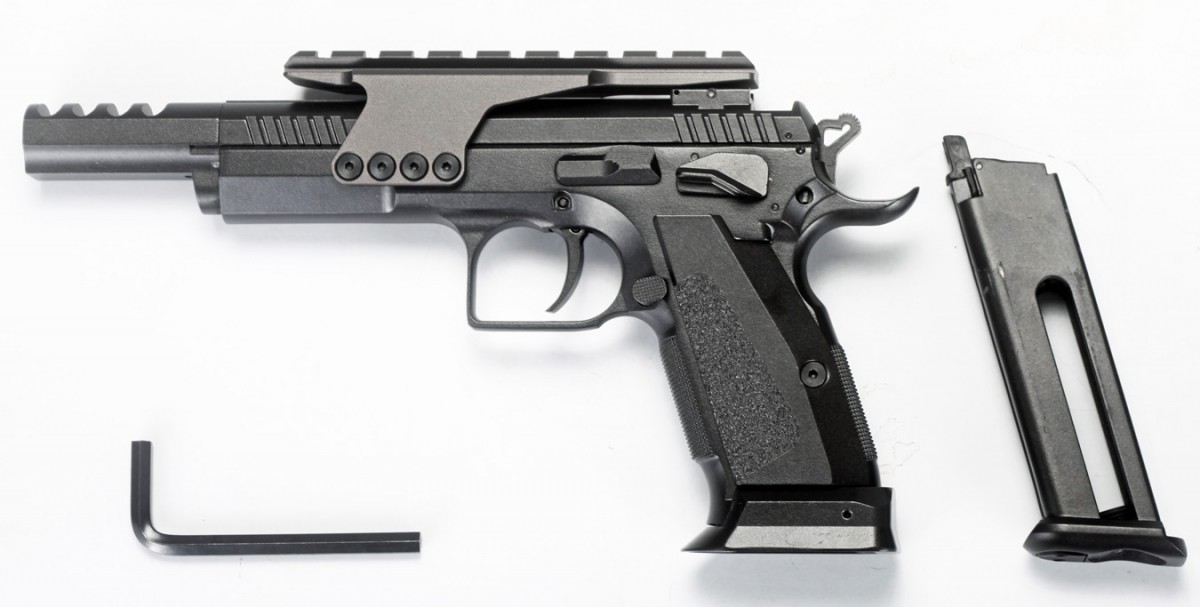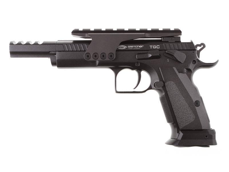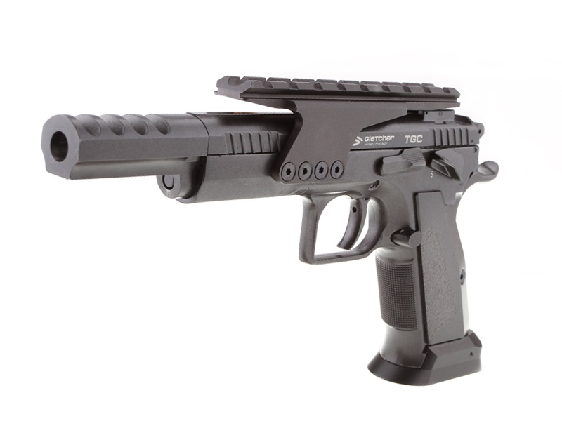 Пистолет пневматический Gletcher TGC: - спортивная модель пневматического пистолета, копирующая огнестрельный аналог для соревнований IPSC с измененной рамой и дульным компенсатором. - пистолет не оснащен прицельными приспособлениями - в комплектацию входит съемная универсальная планка стандарта Weaver / Picatinny, предназначенная для установки различных прицелов / ЛЦУ (приобретаются отдельно) - длина планки позволяет использовать практически любые прицельные приспособления - габаритные характеристики, идентичные оригиналу - вес, сходный с весом огнестрельного аналога - подвижный затвор - система Blowback, обеспечивающая движение затвора, для имитации отдачи и большей реалистичности при стрельбе - действующая затворная задержка - ударно-спусковой механизм одинарного действия (Single Action), обеспечивающий стрельбу с предварительным взведением курка - магазин пистолета полноразмерный, металлический, вмещающий в себя и дробь, и баллон CO2 - скрытый поджимной винт баллона, обеспечивающий большую визуальную схожесть с оригиналом