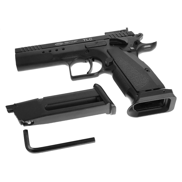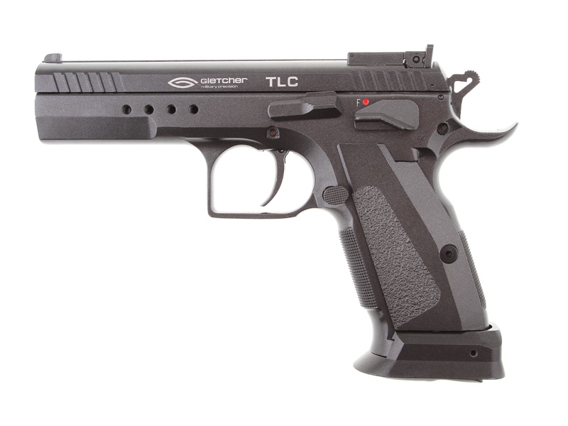 Пистолет пневматический Gletcher TLC: - габаритные характеристики, идентичные оригиналу - вес, сходный с весом огнестрельного аналога - подвижный затвор - система Blowback, обеспечивающая движение затвора, для имитации отдачи и большей реалистичности при стрельбе - действующая затворная задержка - ударно-спусковой механизм одинарного действия (Single Action), обеспечивающий стрельбу с предварительным взведением курка - скрытый поджимной винт баллона, обеспечивающий большую визуальную схожесть с оригиналом - магазин пистолета полноразмерный, металлический, вмещающий в себя и дробь, и баллон CO2