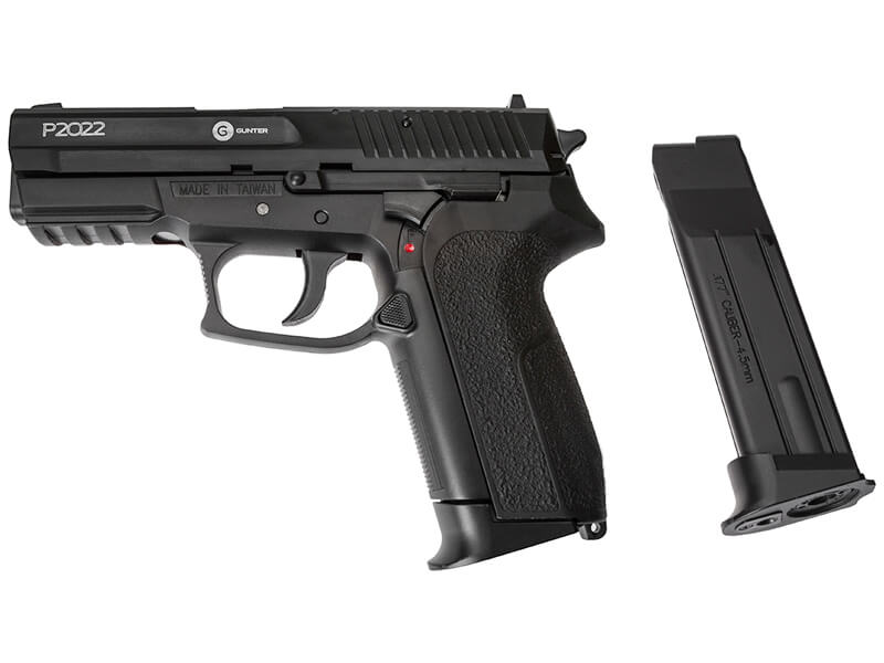 Пневматический пистолет Gunter P2022 - один из самых мощных пистолетов Gunter.Габариты пистолета повторяют швейцарский SIG-Sauer SP 2022. Имеет планку стандарта Weaver/Picatinny для установки подствольных прицелов, фонарей и других оружейных аксессуаров. На мушке и на целике белые метки для облегчения прицеливания, в том числе в условиях недостаточной освещённости.