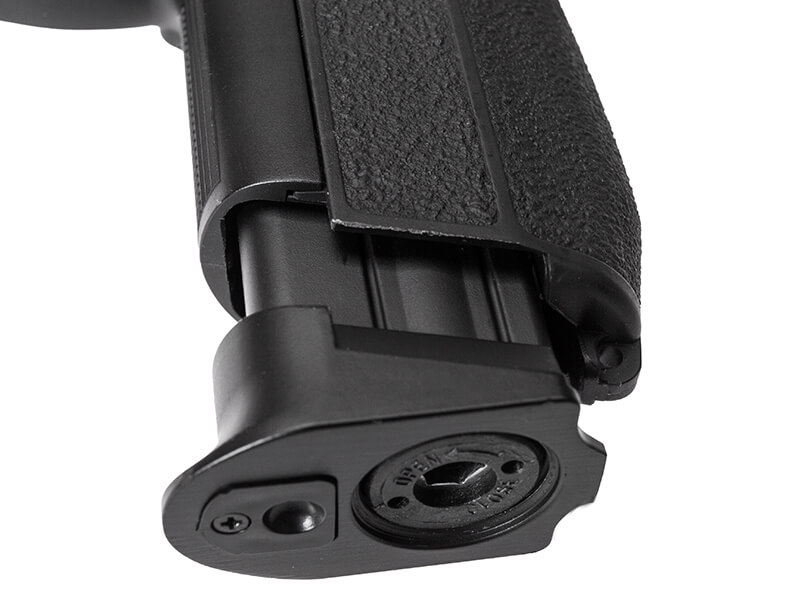 Скрытый в рукояти поджимной винт баллона, требующий ключа (в комплекте)