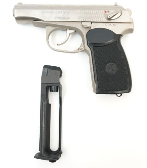 Пневматический пистолет Baikal МР 654к-24 Макаров, белый (никелированный) поставляется со скрытым поджимным винтом. Популярный газобаллонный аналог пистолета Макарова. Идеальное оружие для получения первоначальных навыков в обращении с оружием и развлекательной стрельбы. Внешний вид оружия, механическая прочность, надежность конструкции, удобство в обращении и качество изготовления и сборки всех деталей и узлов оружия идентичны ПМ. Ударно-спусковой механизм пистолета позволяет вести стрельбу как самовзводом, так и с предварительным взведением курка. При постановке оружия на предохранитель при взведенном курке происходит безопасный спуск курка, аналогично прототипу. Стреляющее устройство - магазин, клапан и баллончик с углекислотой образует единый отдельный блок, который вставляется в рукоятку, аналогично магазину. Пистолет очень прост в эксплуатации и ремонте, крепкий и ударостойкий корпус не подвержен повреждениям. Именно поэтому данный пистолет является одним из самых популярных в России. Для Екатеринбурга:
