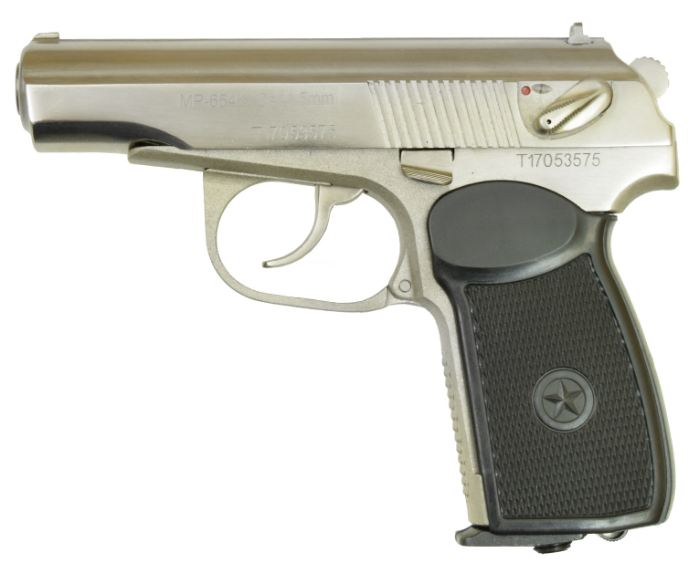 Главная → Купить по низкой цене → Пневматические пистолеты → Baikal, МР (Россия) → Пневматический пистолет Baikal МР-654-24 Макаров, белый (никелированный)