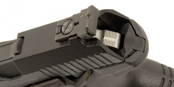 Прицел с микрометрической регулировкой позволяет регулировать прицельную линию по горизонтали и вертикали. Ударно-спусковой механизм дает возможность производить стрельбу как самовзводом, так и с предварительно взведенным курком.