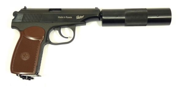 Пистолет пневматический Baikal МР-654К-22 оснащен съемным фальшглушителем Фальшглушитель съемный, на резьбе. Пистолет поставляется со скрытым поджимным винтом. Популярный газобаллонный аналог пистолета Макарова. Идеальное оружие для получения первоначальных навыков в обращении с оружием и развлекательной стрельбы. Внешний вид оружия, механическая прочность, надежность конструкции, удобство в обращении и качество изготовления и сборки всех деталей и узлов оружия идентичны ПМ. Ударно-спусковой механизм пистолета позволяет вести стрельбу как самовзводом, так и с предварительным взведением курка. При постановке оружия на предохранитель при взведенном курке происходит безопасный спуск курка, аналогично прототипу. Стреляющее устройство - магазин, клапан и баллончик с углекислотой образует единый отдельный блок, который вставляется в рукоятку, аналогично магазину. Пистолет очень прост в эксплуатации и ремонте, крепкий и ударостойкий корпус не подвержен повреждениям. Именно поэтому данный пистолет является одним из самых популярных в России. Для Екатеринбурга: