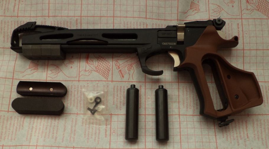 Спусковой механизм пистолета имеет регулировки предварительного хода крючка спускового и усилия спуска. Прицел оборудован микрометрическими винтами регулировок положения целика по вертикали и горизонтали. Удобство использования и эргономика обеспечиваются ортопедической рукояткой и возможностью установки дополнительных балансировочных грузов на планку Пикатинни стандартного размера, выполненную на кожухе ствола. * заправочное устройство поставляется отдельно
