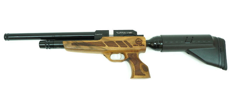 Пневматический пистолет Kral Puncher NP-04 - новинка 2020 года. Объем резервуаров 530 см3, вес 2.950 кг, длина ствола 32 см, длина общая 77 см (с прикладом) Суммарный ОБЪЕМ ДВУХ РЕЗРВУАРОВ 530 см3 !!! Пневматический пистолет Kral Puncher NP-04 Auto (орех, PCP) – это модель ПОЛУАВТОМАТИЧЕСКОГО ТИПА, он перезаряжается сам после каждого выстрела! Пистолет оснащен удобным биатлонным взводом. Особенность модели – наличие одновременно 2-х резервуаров сжатого воздуха, один из которых расположен под стволом, а другой – в прикладе. Общий объем воздуха на два резервуара – 530 см3. С полной заправкой пистолет способен произвести порядка 130 выстрелов. Имеется манометр для контроля уровня давления. Kral Puncher NP-04 Auto стреляет стандартными пулями 4,5 мм, вместимость его магазина – 14 снарядов. . Пистолет оборудован комбинированным креплением "ласточкин хвост" (11 мм) /Weaver для установки оптики на ствольной коробке. Все детали пистолета изготовлены с соблюдением требований высоких стандартов, используемых в оборонной промышленности. Ортопедическая форма приклада и ультрамягкий амортизирующий затыльник, сводят отдачу от выстрела до минимума. Комплектация: пистолет Kral Puncher NP-04 Auto, паспорт + сертификат, пластиковый кейс, 2 магазина (барабан), заправочный штуцер, усиленный перепускной клапан Для Екатеринбурга: