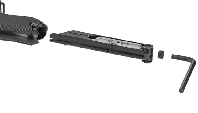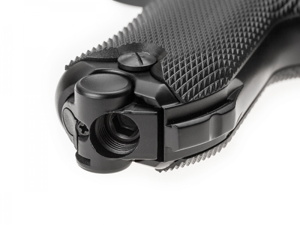 - точное воспроизведение внешнего вида и массогабаритных характеристик легендарного «парабеллума» - воспроизведена оригинальная система запирания затвора при помощи системы рычагов - полноразмерный магазин - действующая затворная задержка - «Анатомическая» рукоять с большим углом наклона и легкий спуск, как и у огнестрельного оригинала - ударно-спусковой механизм одинарного действия - реализована система blowback - скрытый поджимной винт баллона, обеспечивающий большую визуальную схожесть с оригиналом