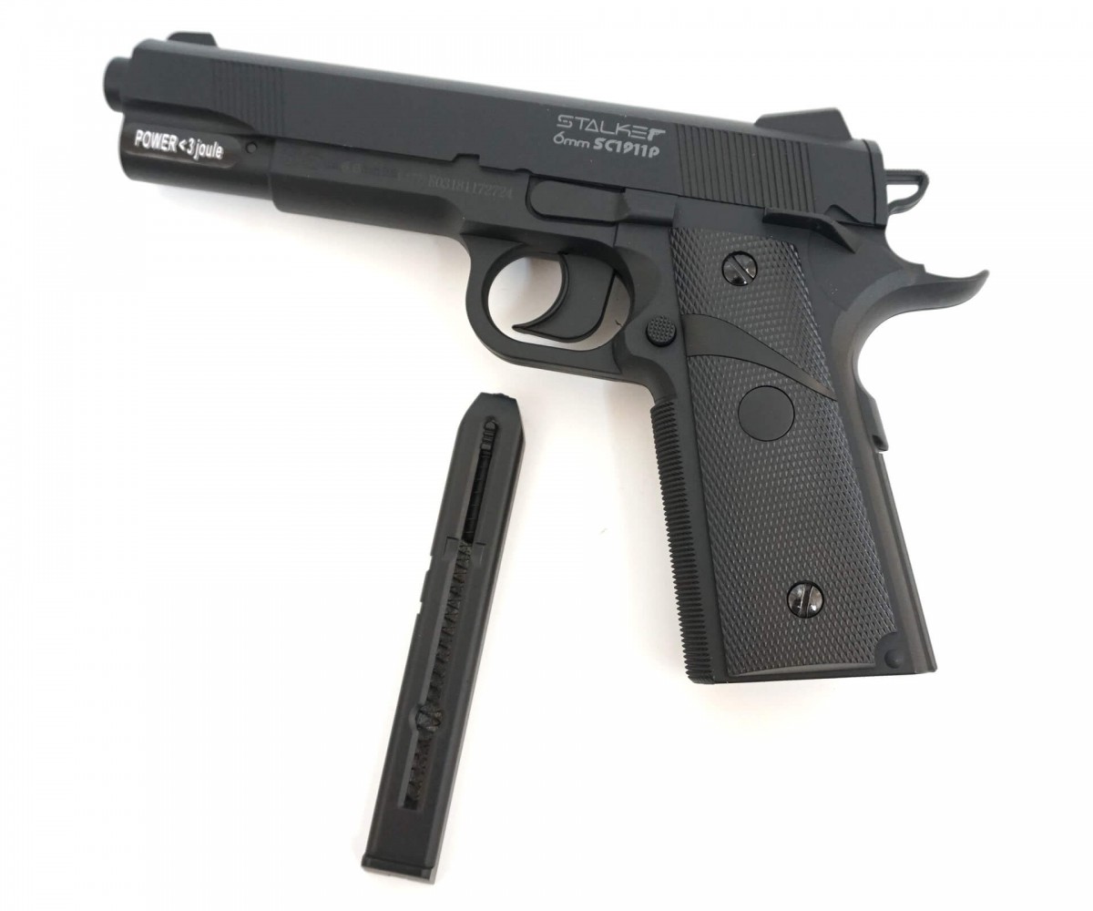 Главная → Купить по низкой цене → Пневматические пистолеты → Страйкбол (калибр 6мм) → Пистолет пневматический Stalker SC1911P (Colt 1911), кал. 6мм, 12г CO2, пластик