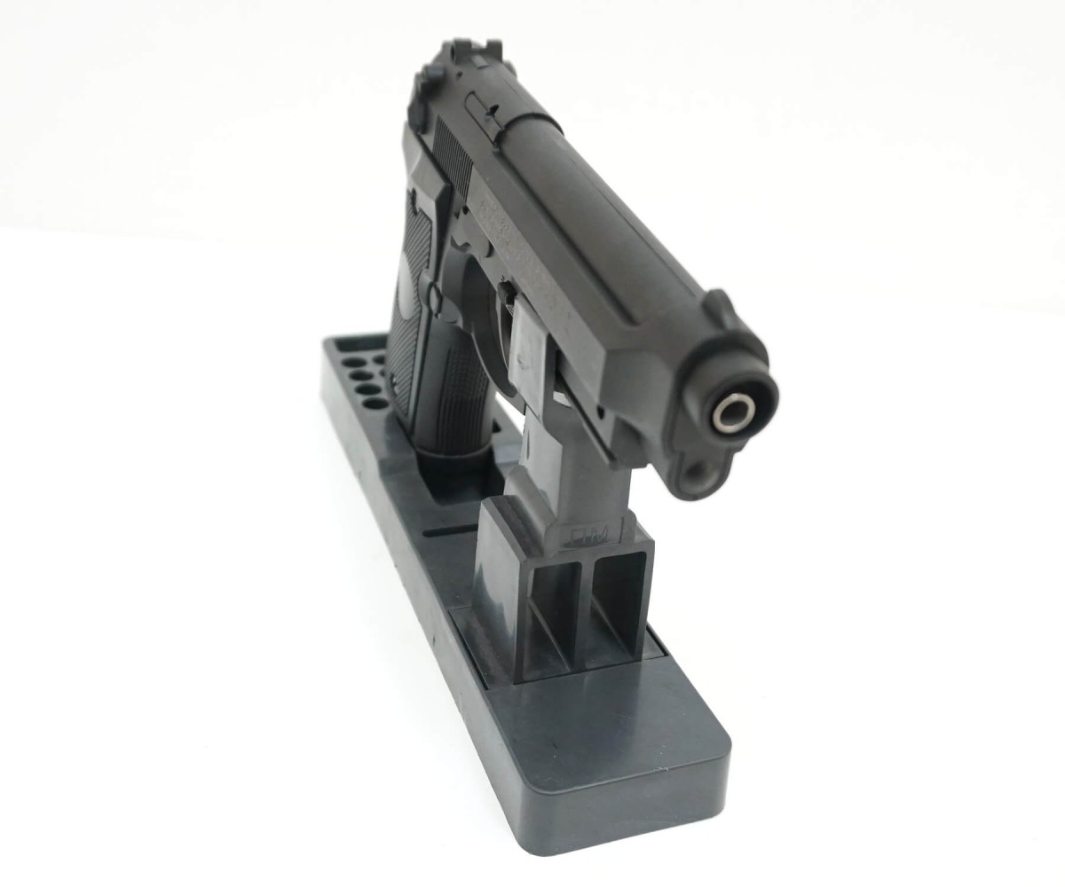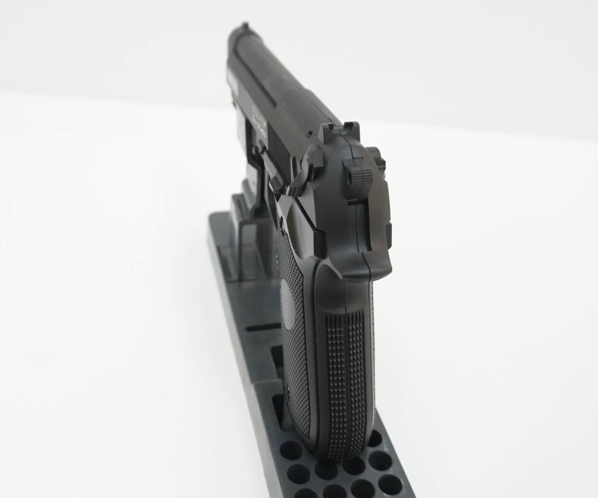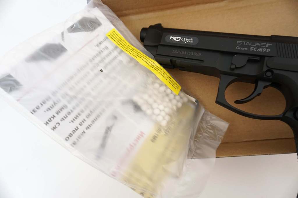 Страйкбольный пистолет Stalker SCM9P (Beretta M9) – это газобаллонная копия прославленной Беретты М9, разработка известного азиатского производителя. Сталкер СКМ9П отличается простой конструкцией и доступен для освоения даже подросткам. Энергия выстрела здесь обеспечивается за счет баллончика с углекислым газом, который устанавливается в специальный отсек рукоятки при помощи шестигранного ключа. Производитель не рекомендует оставлять баллончик в пистолете более чем на 4 часа. Магазин пистолета механический, вмещает 20 боеприпасов – ими в данном случае являются шарики из пластика калибра 6 мм. Являясь оружием, рассчитанным на начинающих пользователей, Stalker SCM9P имеет небольшую скорость выстрела – 105 м/с, но такого показателя вполне достаточно для освоения страйкбольного оружия. Стрельба ведется в полуавтоматическом режиме. Так как величина дульной энергии не превышает 3 Дж, пистолет может свободно приобрести любой желающий. С правой стороны пистолета расположен предохранитель в виде тумблера. Под стволом пистолета Stalker SCM9P находится направляющая для установки дополнительных аксессуаров для стрельбы – например, ЛЦУ или фонаря. Материал изготовления изделия – оружейный пластик хорошего качества, который имеет повышенную устойчивость к влаге. Пистолет имеет небольшой вес – всего 0,42 кг, длина 22 см. В комплект входят шарики для стрельбы и инструкция. Для Екатеринбурга: